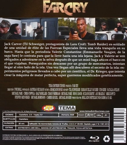https://back.dvdstorespain.es/es/segunda-mano/129288-far-cry-blu-ray-segunda-mano-8436533824257.html129288Far Cry [Blu-Ray] (2008) [Segunda mano]La trama sigue al soldado Jack Carver y la reportera Valerie Constantine, quienes se encuentran investigando una isla repleta de super soldados modificados genéticamente. Adaptación del videojuego Far Cry. https://dvdstorespain.es/1130763-home_default/far-cry-blu-ray-segunda-mano.jpg5.7025instockSony Pictures Home Entertainment Y CIA5.70255.7025002026-02-19T08:43:54+0100/Inicio/Inicio/Blu-ray/Inicio/Películas/Inicio/Segunda Mano
