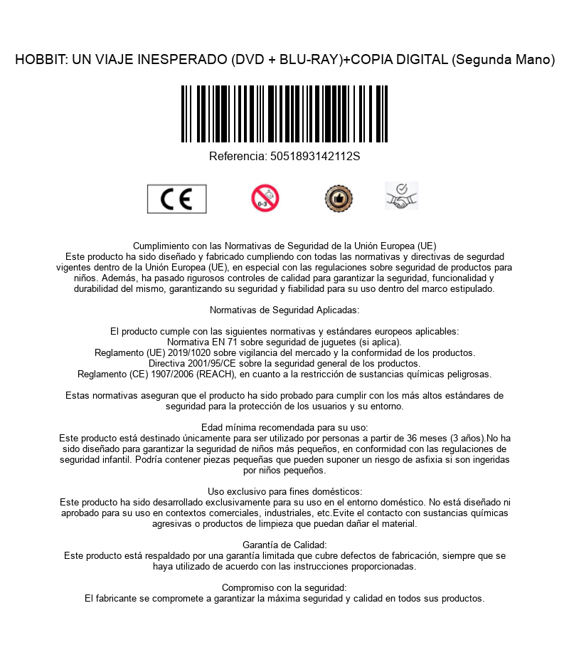 https://back.dvdstorespain.es/es/segunda-mano/129290-hobbit-un-viaje-inesperado-dvd-blu-raycopia-digital-segunda-mano-5051893142112.html129290El Hobbit: un Viaje Inesperado (Con copia digital) [DVD, Blu-ray] (2012) The Hobbit: An Unexpected Journey [Segunda mano]Precuela de la trilogía "El Señor de los Anillos", obra de J.R.R. Tolkien. En compañía del mago Gandalf y de trece enanos, el hobbit Bilbo Bolsón emprende un viaje a través del país de los elfos y los bosques de los trolls, desde las mazmorras de los orcos hasta la Montaña Solitaria, donde el dragón Smaug esconde el tesoro de los Enanos. Finalmente, en las profundidades de la Tierra, encuentra el Anillo Único, hipnótico objeto que será posteriormente causa de tantas sangrientas batallas en la Tierra Media. https://dvdstorespain.es/1130788-home_default/hobbit-un-viaje-inesperado-dvd-blu-raycopia-digital-segunda-mano.jpg8.9256instock8.92568.9256002026-02-19T08:54:34+0100/Inicio/Inicio/DVD/Inicio/Blu-ray/Inicio/Películas/Inicio/Segunda Mano