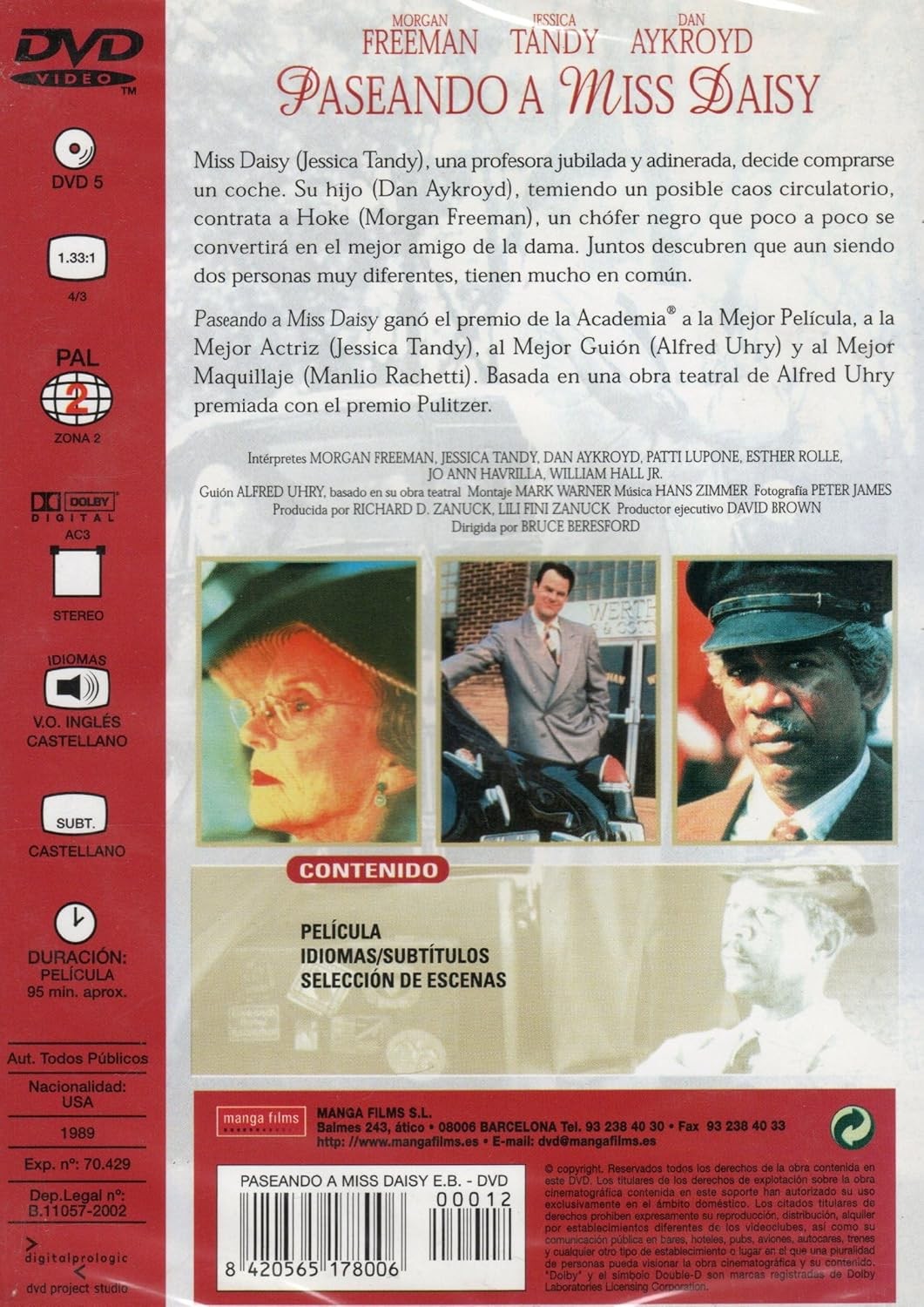 https://back.dvdstorespain.es/es/segunda-mano/130137-paseando-a-miss-daisy-dvd-edicion-basica-dvd-segunda-mano-0605848682229.html130137Paseando a Miss Daisy (Edición básica) [DVD] (1989) Driving Miss Daisy (Segunda mano)En la sureña Atlanta, Georgia, Miss Daisy (Jessica Tandy) es una antipática y autoritaria profesora jubilada de 72 años. Tras sufrir un accidente conduciendo su coche, su hijo (Dan Aykroyd), temiendo por la vida de su madre, contrata a un chófer negro (Morgan Freeman) para que la lleve de paseo. Al principio, la desconfianza de la anciana respecto al tranquilo conductor es absoluta. https://dvdstorespain.es/1144234-home_default/paseando-a-miss-daisy-dvd-edicion-basica-dvd-segunda-mano.jpg5.2893instockResearch5.28935.2893002026-03-05T22:17:43+0100/Películas/Segunda Mano