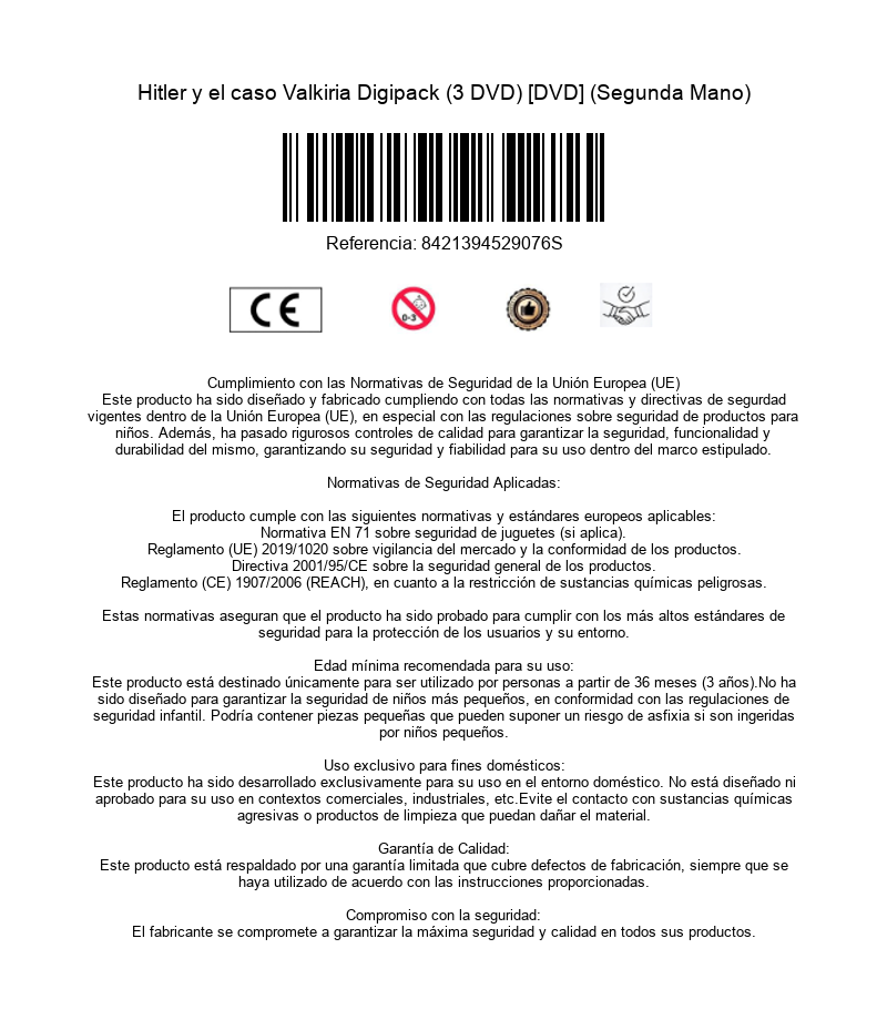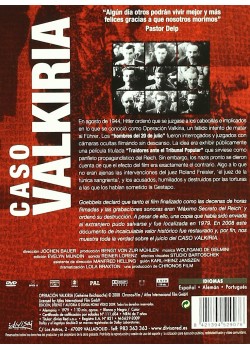 https://back.dvdstorespain.es/es/segunda-mano/130139-hitler-y-el-caso-valkiria-digipack-3-dvd-dvd-segunda-mano-8421394529076.html130139Caso Valkiria (Digipack, 3 discos) [DVD] (1979) Geheime Reichssache (Valkiria) (Segunda mano)En agosto de 1944, Hitler ordenó que se juzgase a los cabecillas e implicados en lo que se conoció como Operación Valkiria, un fallido intento de matar al Führer. Los "hombres del 20 de julio" fueron interrogados y juzgados con cámaras ocultas filmando sin descanso. La idea era exhibir públicamente una película titulada "Traidores ante el Tribunal Popular" que sirviese como panfleto propagandístico del Reich. Sin embargo, los nazis pronto se dieron cuenta de que el efecto del film era exactamente el contrario.https://dvdstorespain.es/1144272-home_default/hitler-y-el-caso-valkiria-digipack-3-dvd-dvd-segunda-mano.jpg8.2645instock8.26458.2645002026-03-05T22:20:57+0100/Inicio/Inicio/DVD/Inicio/Películas/Inicio/Segunda Mano