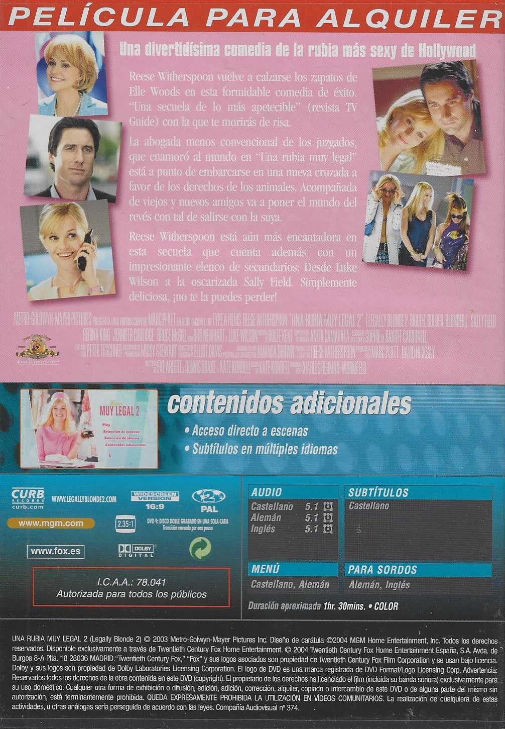 https://back.dvdstorespain.es/es/segunda-mano/130315-una-rubia-muy-legal-2-dvd-2003-legally-blonde-2-red-white-blonde-segunda-mano-0605848866483.html130315Una Rubia Muy Legal 2 [DVD] (2003) Legally Blonde 2: Red, White & Blonde (Segunda mano)Elle (Reese Witherspoon) está de vuelta como la enérgica, optimista y megapija joven abogada de la facultad de Harvard. En esta ocasión, Elle irá a Washington a defender los derechos de los animales.https://dvdstorespain.es/1147508-home_default/una-rubia-muy-legal-2-dvd-2003-legally-blonde-2-red-white-blonde-segunda-mano.jpg5.2893instock5.28935.2893002026-03-14T13:00:54+0100/Inicio/Inicio/DVD/Inicio/Películas/Inicio/Segunda Mano