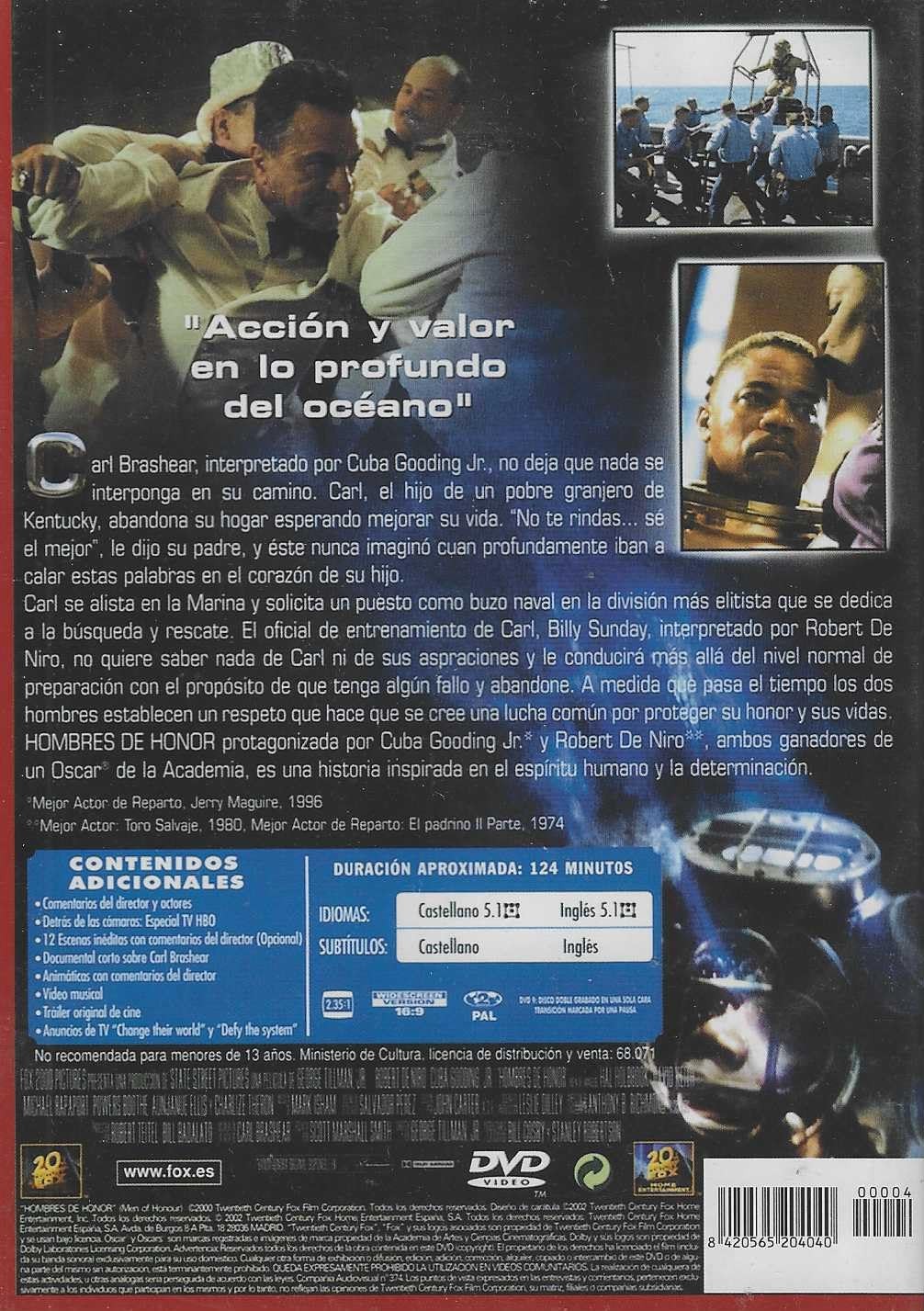 https://back.dvdstorespain.es/es/segunda-mano/130325-hombres-de-honor-dvd-2000-men-of-honor-segunda-mano-0605848664355.html130325Hombres de Honor [DVD] (2000) Men of Honor (Segunda mano)Carl Brashear nació en Kentucky en el seno de una familia de campesinos negros cuya vida ha estado siempre marcada por el racismo. Mac, el padre de Carl, le enseñó desde niño el valor de la perseverancia como arma para vencer los obstáculos y alcanzar sus sueños. Carl sueña con ingresar en la escuela de buzos de la marina de los Estados Unidos.https://dvdstorespain.es/1147713-home_default/hombres-de-honor-dvd-2000-men-of-honor-segunda-mano.jpg5.2893instock5.28935.2893002026-03-15T13:17:01+0100/Inicio/Inicio/DVD/Inicio/Películas/Inicio/Segunda Mano