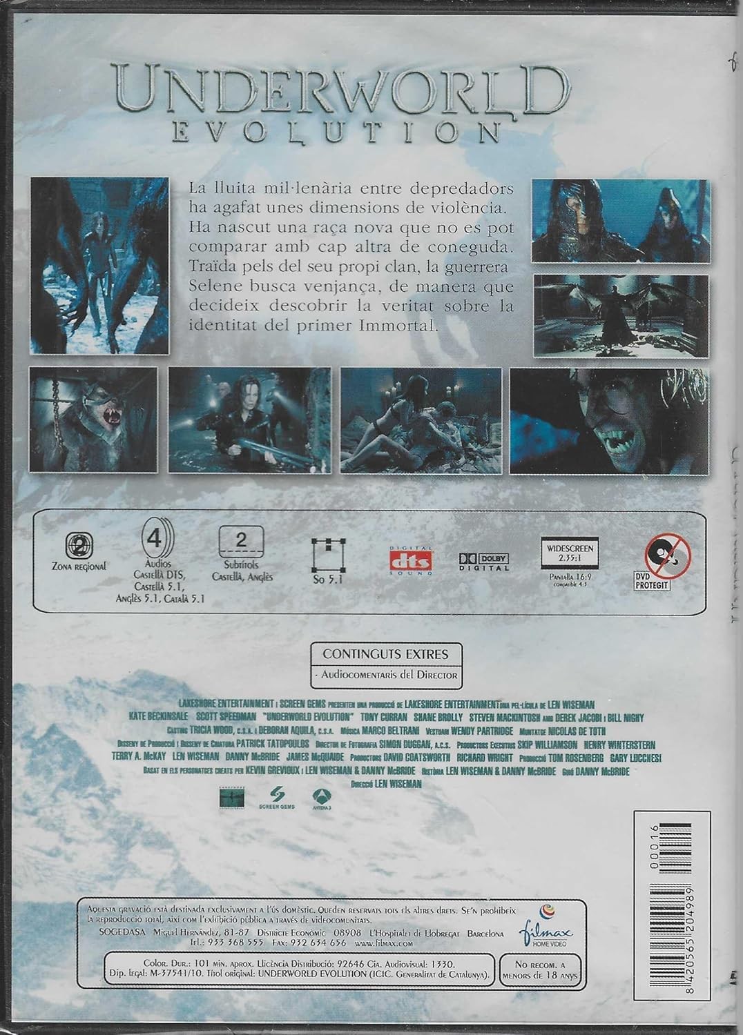 Sumérgete en el mundo oscuro y fascinante de 'Underworld Evolution' con esta edición en DVD distribuida por Filmex. La película continúa la épica saga de vampiros y licántropos en una batalla milenaria que alcanza nuevas dimensiones de violencia e intensidad. Esta versión incluye audio en DTS y Dolby Digital, disponible en múltiples idiomas y subtítulos para una experiencia cinematográfica completa. Presentada en formato widescreen 16:9, la película mantiene su impactante calidad visual tal como fue concebida para la pantalla grande. El DVD incluye contenido adicional como comentarios del director, ofreciendo una visión más profunda de esta aventura sobrenatural. Con una duración aproximada de 101 minutos, esta película no recomendada para menores de 18 años te llevará a través de una historia de venganza, descubrimiento y evolución en el submundo de las criaturas de la noche. La edición slim hace que este DVD sea perfecto para tu colección de cine fantástico.