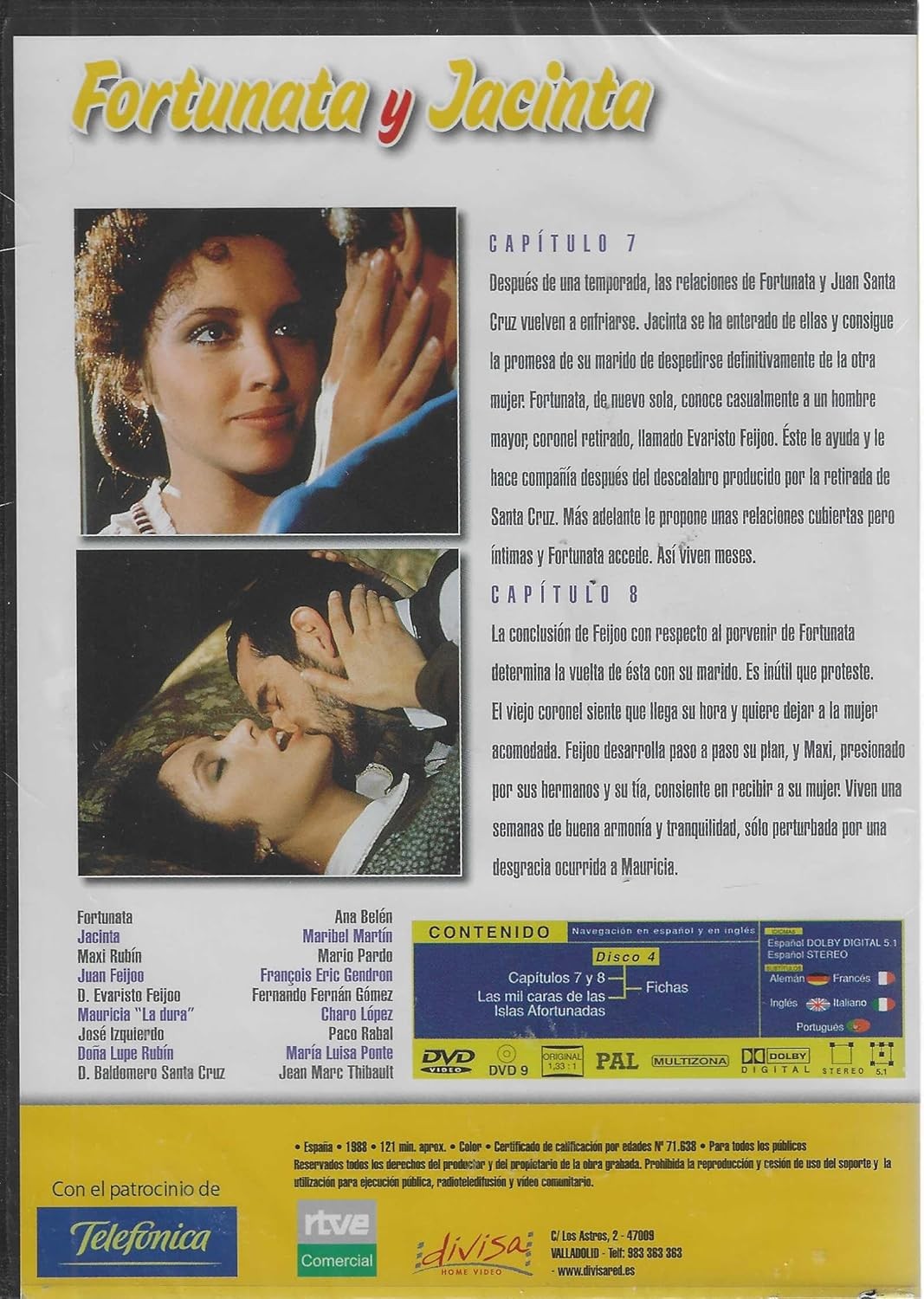 Fortunata y Jacinta DVD Disco 4 Edición Slim presenta los capítulos 7 y 8 de esta aclamada adaptación de la obra maestra de Benito Pérez Galdós. En estos episodios, las complejas relaciones entre Fortunata y Juan Santa Cruz se intensifican mientras Jacinta descubre nuevas verdades sobre su matrimonio. La producción cuenta con las destacadas actuaciones de Ana Belén, Maribel Martín, Mario Pardo y un elenco excepcional bajo la dirección de Mario Camus. Esta edición incluye contenido adicional como fichas de personajes y navegación en español e inglés. El DVD ofrece calidad de imagen digital y sonido estéreo, permitiendo disfrutar plenamente de esta magistral recreación televisiva que captura la esencia del Madrid del siglo XIX y los conflictos humanos atemporales de la novela galdosiana.