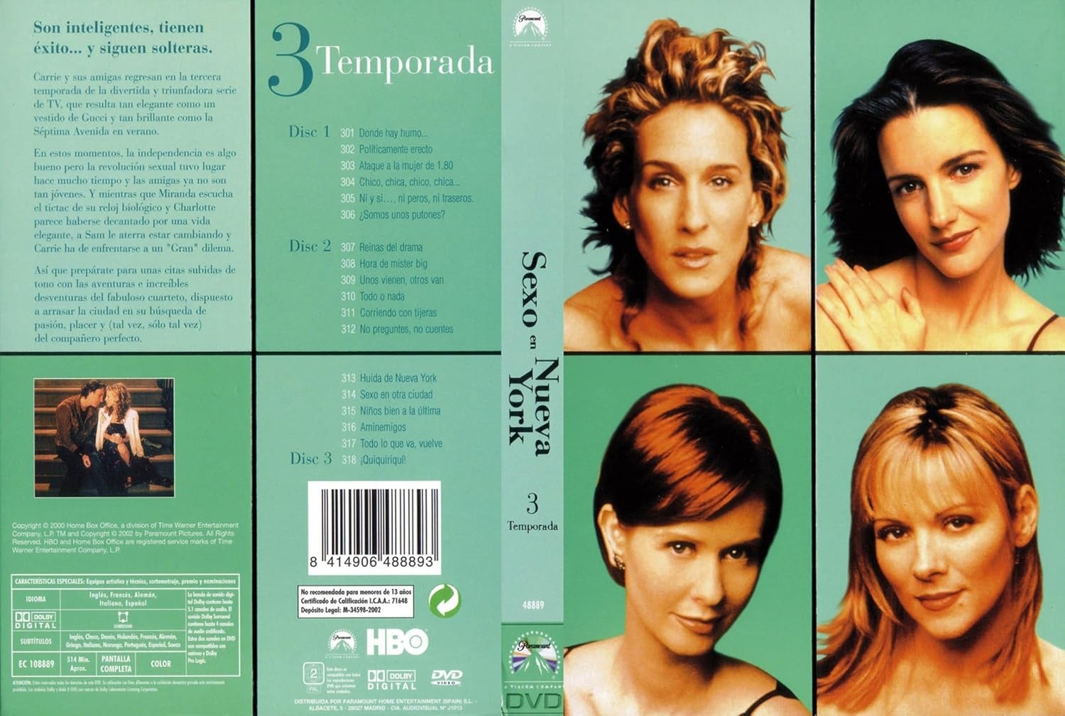 https://back.dvdstorespain.es/es/series-dvd-blu-ray/130068-sexo-en-nueva-york-3-temporada-serie-dvd-dvd--8414906488893.html130068Sexo en Nueva Yorkserie (Tercera temporada) [DVD] (1998) Sex and the CitySerie de TV (1998-2004). 6 temporadas. 94 capítulos. Serie icónica del cambio de siglo, "Sex in the City" seguía las aventuras amorosas y sexuales de cuatro neoyorquinas solteras e independientes: la columnista Carrie Bradshaw (Parker) -que narraba las historias- y sus tres mejores amigas: la abogada sensata Miranda (Cynthia Nixon), la pija idealista Charlotte York (Kristin Davis) y la promiscua y desinhibida Samantha Jones (Kim Cattrall). Las cuatro treintañeras disfrutaban de la ajetreada vida de Manhattan compaginando sus trabajos con citas con hombres, reuniones de complicidad entre ellas en restaurantes de moda, y fiestas en las mejores discotecas de Nueva York. En principio la serie se basó en una recopilación de artículos de Candace Bushnell ("Sex and the City") publicados en el "New York Observer". Ganó 7 Premios Emmy y 8 Globos de Oro. https://dvdstorespain.es/1142987-home_default/sexo-en-nueva-york-3-temporada-serie-dvd-dvd-.jpg14.5455instock14.545514.5455002026-03-03T16:45:02+0100/Inicio/Inicio/DVD/Inicio/Películas/Inicio/Nuevos