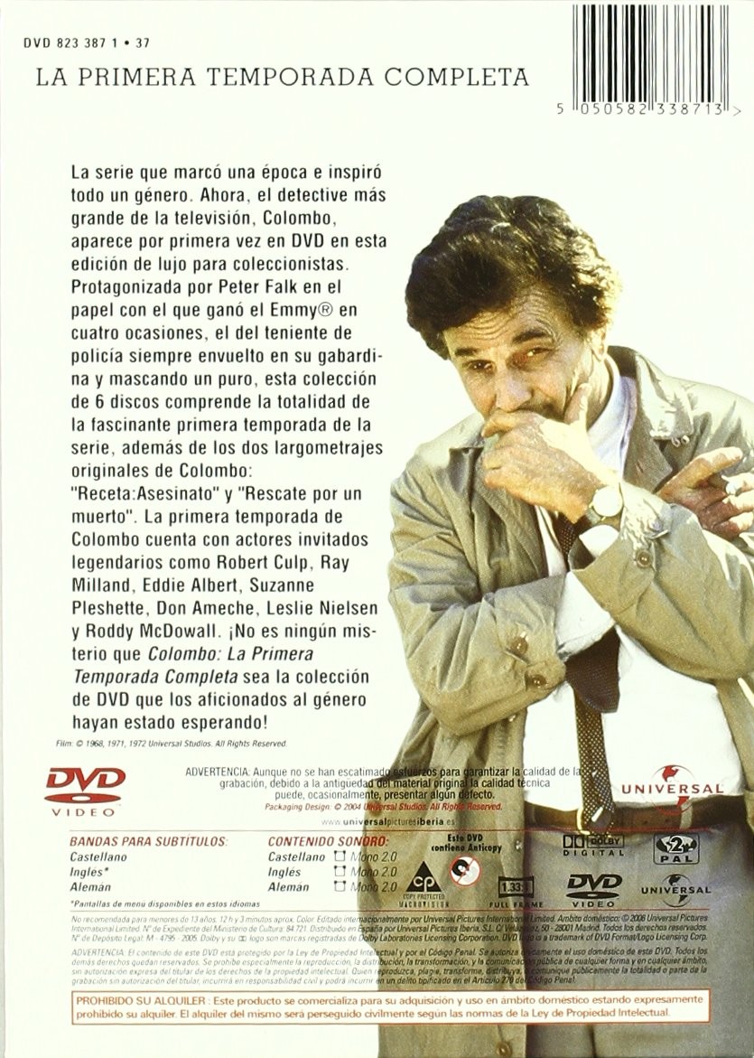https://back.dvdstorespain.es/es/series-dvd-blu-ray/130638-colombo-1-temporada-dvd--5050582338713.html130638Colombo (Primera temporada) [DVD] (1971) ColumboSerie de TV (1971-1978). 12 temporadas. 69 episodios. El teniente Colombo es un desaliñado y aparentemente despistado detective de policía que, a primera vista, suele ser considerado torpe e inofensivo. Lleva siempre gabardina y un puro mientras investiga y resuelve los casos más sorprendentes. https://dvdstorespain.es/1152043-home_default/colombo-1-temporada-dvd-.jpg14.5455instock14.545514.5455002026-03-20T01:45:02+0100/Inicio/Inicio/DVD/Inicio/Películas/Inicio/Nuevos