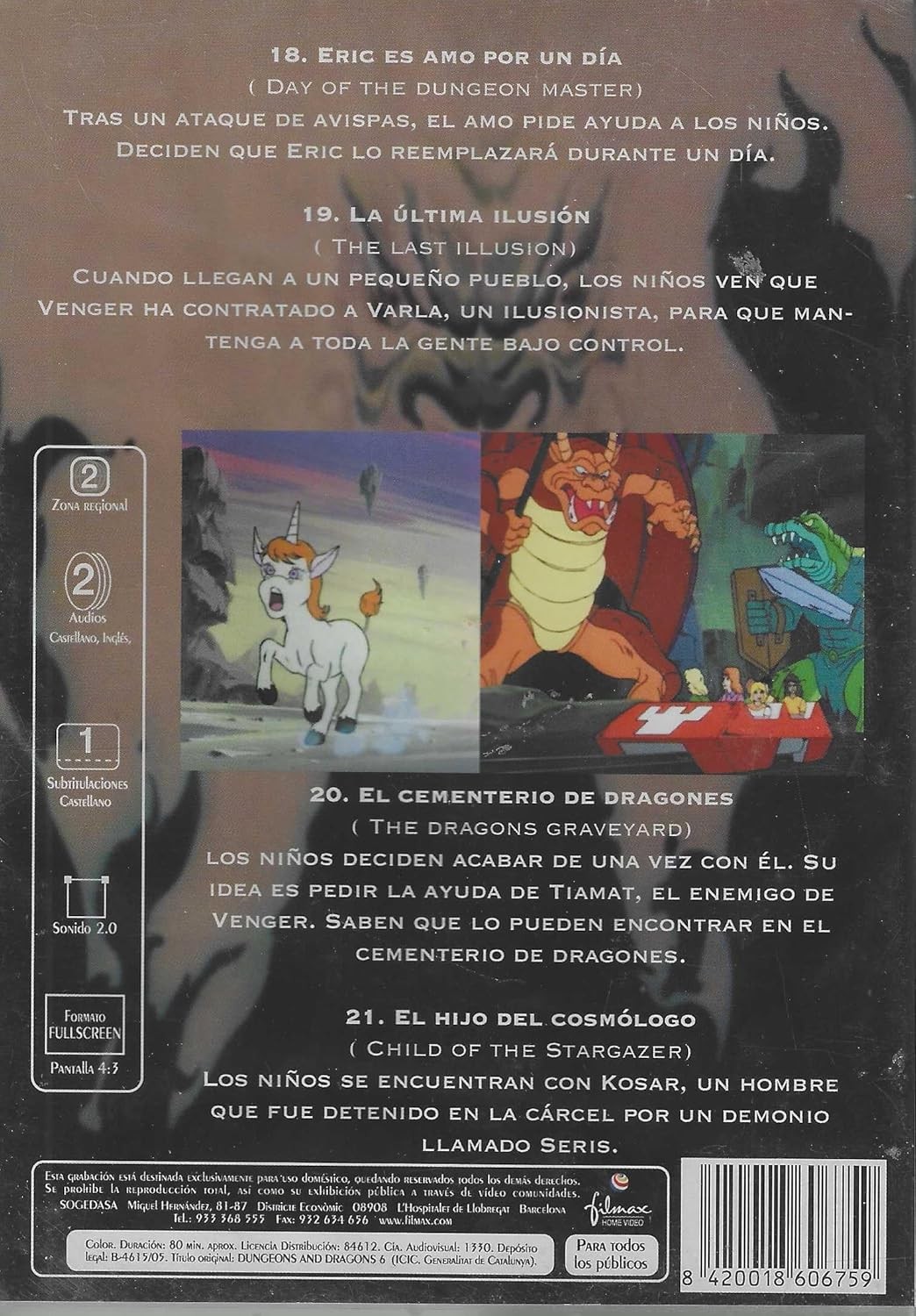 https://back.dvdstorespain.es/es/series-dvd-blu-ray/132119-dragones-mazmorras-vol-6-dvd-dvd-2024--8420018606759.html132119Dragones y Mazmorras (Vol. 6) [DVD] (1983) Dungeons & DragonsSerie de TV (1983-1985). 3 temporadas. 28 episodios. Hank, Presto, Diana, Eric, Sheyla y Bobby son un grupo de amigos que pasan una divertida mañana de domingo en un parque de atracciones. Entran en la atracción llamada 'Dragones y mazmorras' y de pronto son transportados a un extraño lugar. Se encuentran en un mundo fantástico y no saben cómo ni porqué han llegado. En este reino hostil y extraño los chicos tienen un gran aliado: el amo del calabozo, un sabio anciano, poderoso y venerable que les entrega armas mágicas a cada uno de ellos para que puedan defenderse de los terribles peligros que les acechan, el mayor de ellos es Venger, el Señor del Mal. https://dvdstorespain.es/1175892-home_default/dragones-mazmorras-vol-6-dvd-dvd-2024-.jpg7.2727instock7.27277.2727002026-04-22T03:15:02+0200/Inicio/Inicio/DVD/Inicio/Películas/Inicio/Nuevos