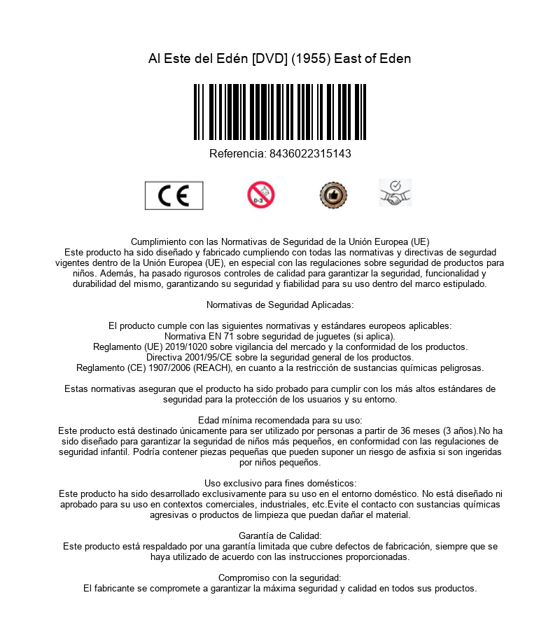 https://back.dvdstorespain.es/es/series-dvd-blu-ray/3381-al-este-del-eden-dvd--8436022315143.html3381Al Este del Edén [DVD] (1955) East of EdenUn granjero californiano tiene dos hijos, Cal y Aron, de caracteres muy diferentes, pero ambos compiten por el cariño de su padre. La situación de Cal se complica cuando averigua que, en realidad, su madre no sólo no está muerta, sino que además regenta un local de alterne. https://dvdstorespain.es/1110294-home_default/al-este-del-eden-dvd-.jpg5.7025instockLlamentol S.L.5.70255.7025002015-04-09T10:53:38+0200/Inicio/Inicio/DVD/Inicio/Series de TV/Inicio/Nuevos
