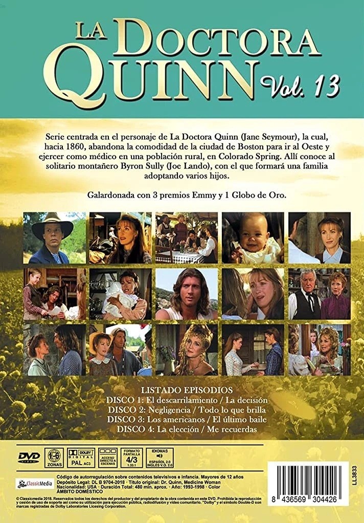 https://back.dvdstorespain.es/es/series-dvd-blu-ray/41213-la-doctora-quinn-volumen-13-dvd--8436569304426.html41213La Doctora Quinn (Volumen 13) [DVD] (1993) Dr. Quinn, Medicine WomanSerie de TV (1993-1998). 6 temporadas. 149 episodios. Hacia 1860, la doctora Quinn (Jane Seymour) abandona la comodidad de la ciudad de Boston para ir al Oeste y ejercer como médico en una población rural en Colorado Spring. Allí conocerá al montañero solitario Byron Sully (Joe Lando), con el que formará una familia adoptando varios hijos.https://dvdstorespain.es/510891-home_default/la-doctora-quinn-volumen-13-dvd-.jpg7.9339instockLlamentol7.93397.9339002018-04-30T23:50:04+0200/Inicio/Inicio/DVD/Inicio/Series de TV/Inicio/Nuevos/Inicio/VELADA SP 20/Inicio/VELADA DE 50/Inicio/VELADA FR 50/Inicio/VELADA IT 50