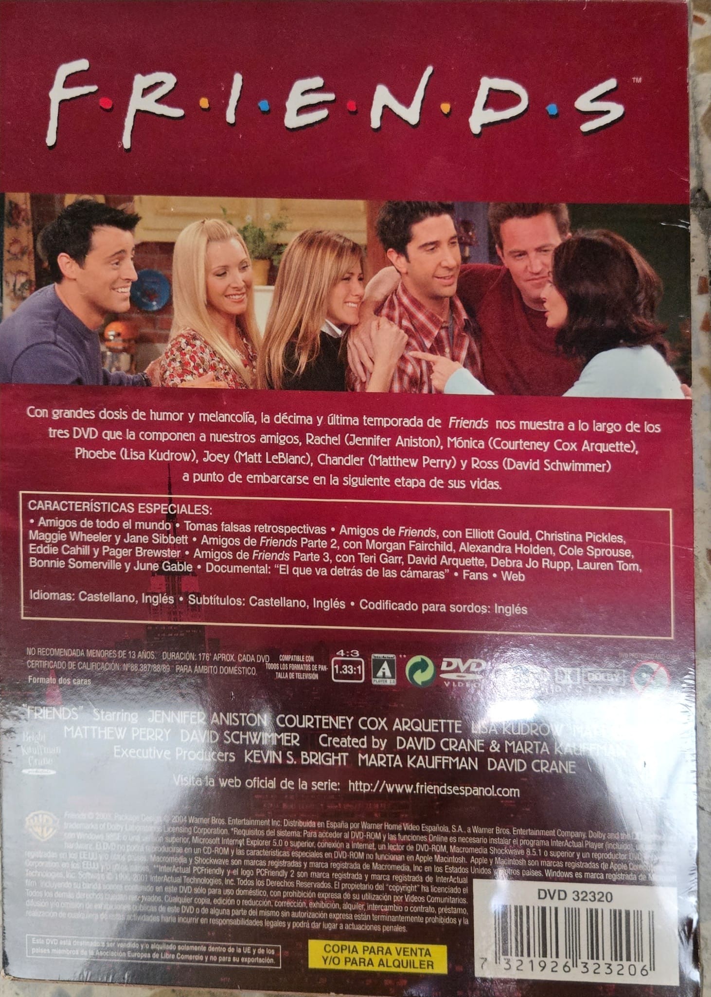 https://back.dvdstorespain.es/es/series-dvd-blu-ray/5008-friends-temporada-10-3-dvds-2003-7321926323206.html5008Friends (Temporada 10) [3 DVDs] (2003)Todo quedó en el aire tras el último episodio de la temporada nueve, que finalizó con el sorprendente beso entre Rachel (Jennifer Aniston) y Joey (Matt LeBlanc). En esta última temporada, Ross (David Schwimmer) intentará reconquistar a Rachel, pero hasta los minutos finales del último capítulo no sabremos si triunfa el amhttps://dvdstorespain.es/676844-home_default/friends-temporada-10-3-dvds-2003.jpg11.2397instock11.239711.2397002015-04-10T20:51:56+0200/Inicio/Inicio/DVD/Inicio/Series de TV/Inicio/Nuevos